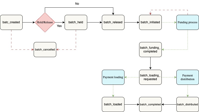 | batch_held | Batch has been moved to held status. Requires account to have hold/release configured to “Yes”. Otherwise, the batch is automatically released and moves to batch_initiated. |