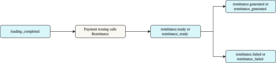 The payment_remittance_ready event payload contains information that the remittance documents are ready to be generated.